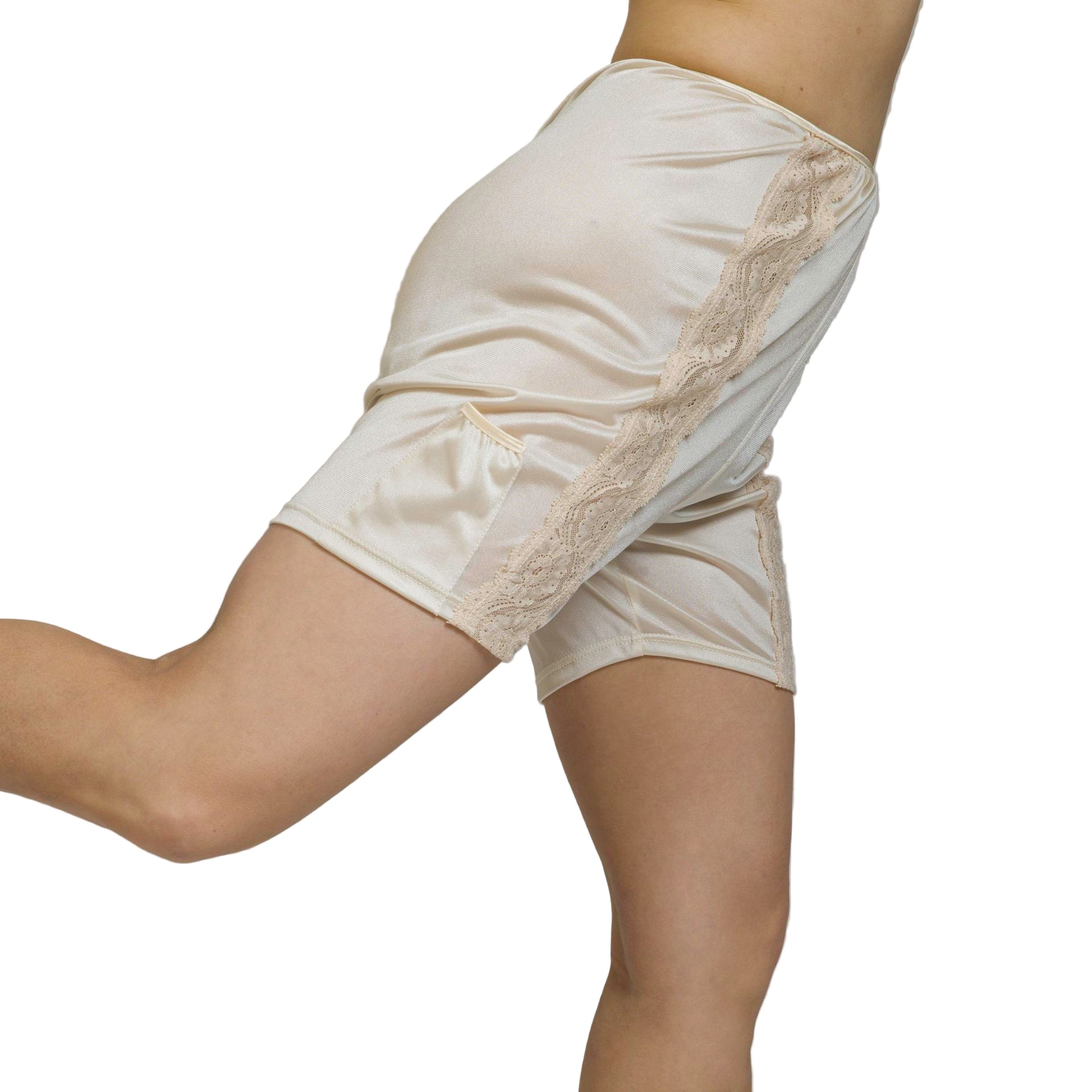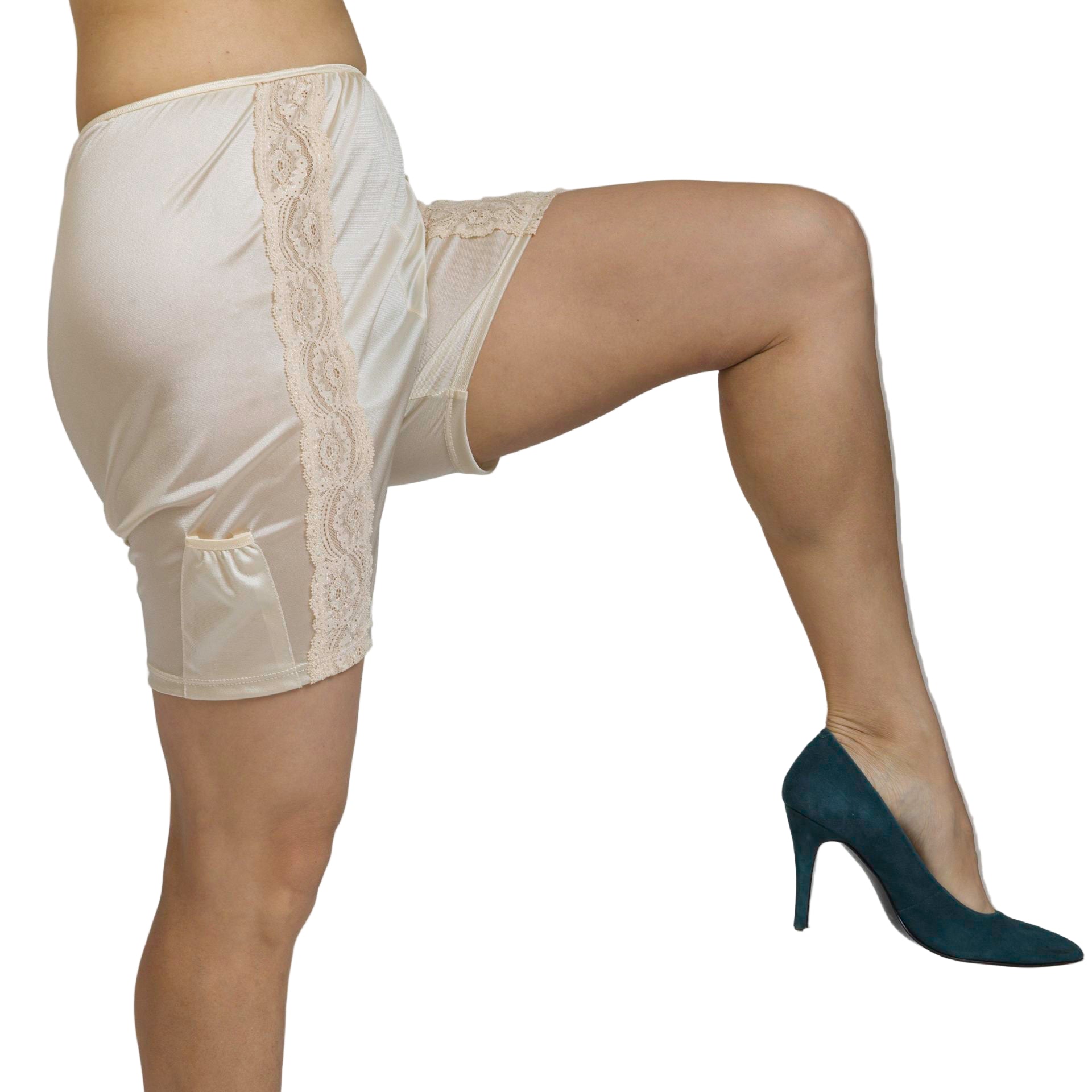 - crafted of light, breathable American-made stretch nylon, soft stretch lace panels, and soft elastic at the waist